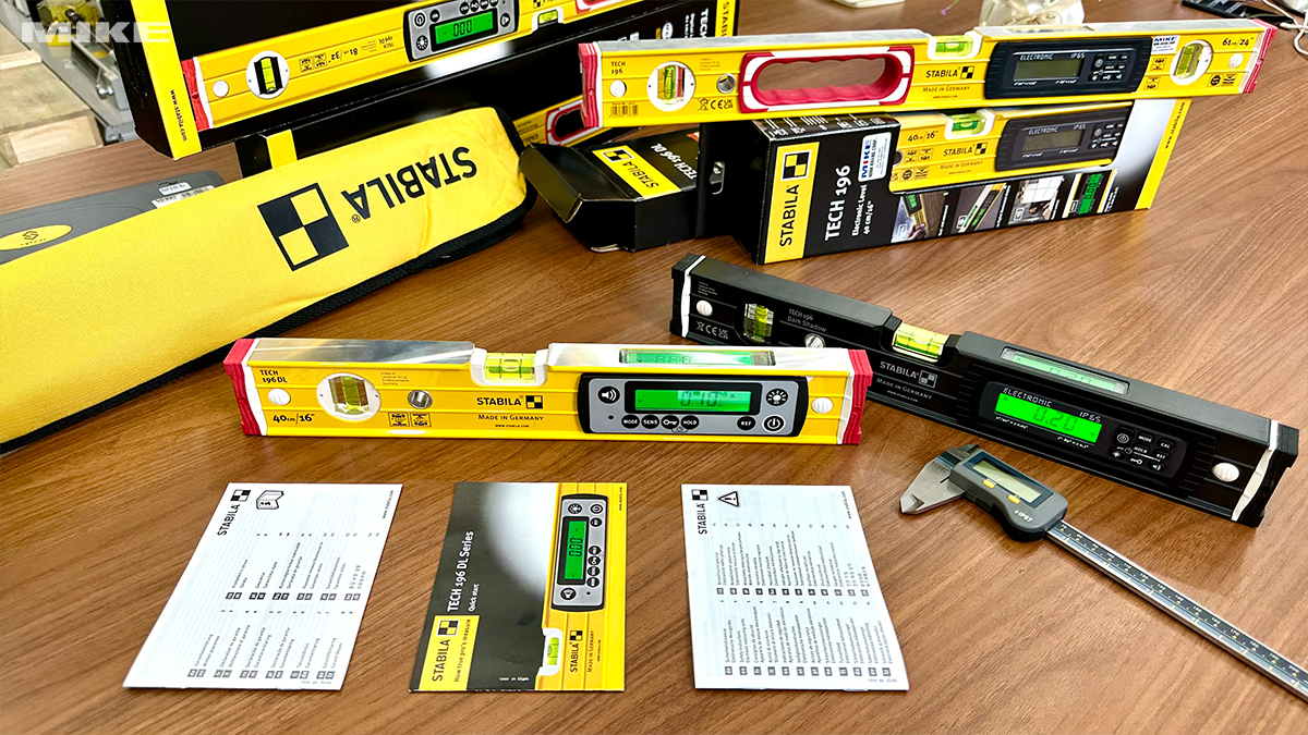 Dòng TECH 196 DL, kháng nước IP67, có khung nhôm cường lực, sơn chống bám bẩn, đầu cao su chống shock. Đo chính xác 0.50 mm/m, màn hình hiển thị số, không cần hiệu chuẩn hàng ngày, bảo vệ khỏi bụi và nước, thời gian hoạt động 400 giờ.