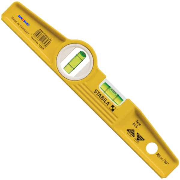 Thước thủy STABILA dòng 81S Torpedo, nhôm đúc nguyên khối. Đây là loại đơn giản nhất trong dòng họ Torpedo, với 2 bọt thủy và kết cấu thiết diện kiểu dầm chữ I. Mặt tiếp xúc đo được phay phẳng, cắt khía chống trơn trượt. Thước nivo cân bằng Torpedo được vát cạnh và thân nhôm đúc, nó là một trong những loại thước thủy chắc chắn nhất mà STABILA sản xuất.