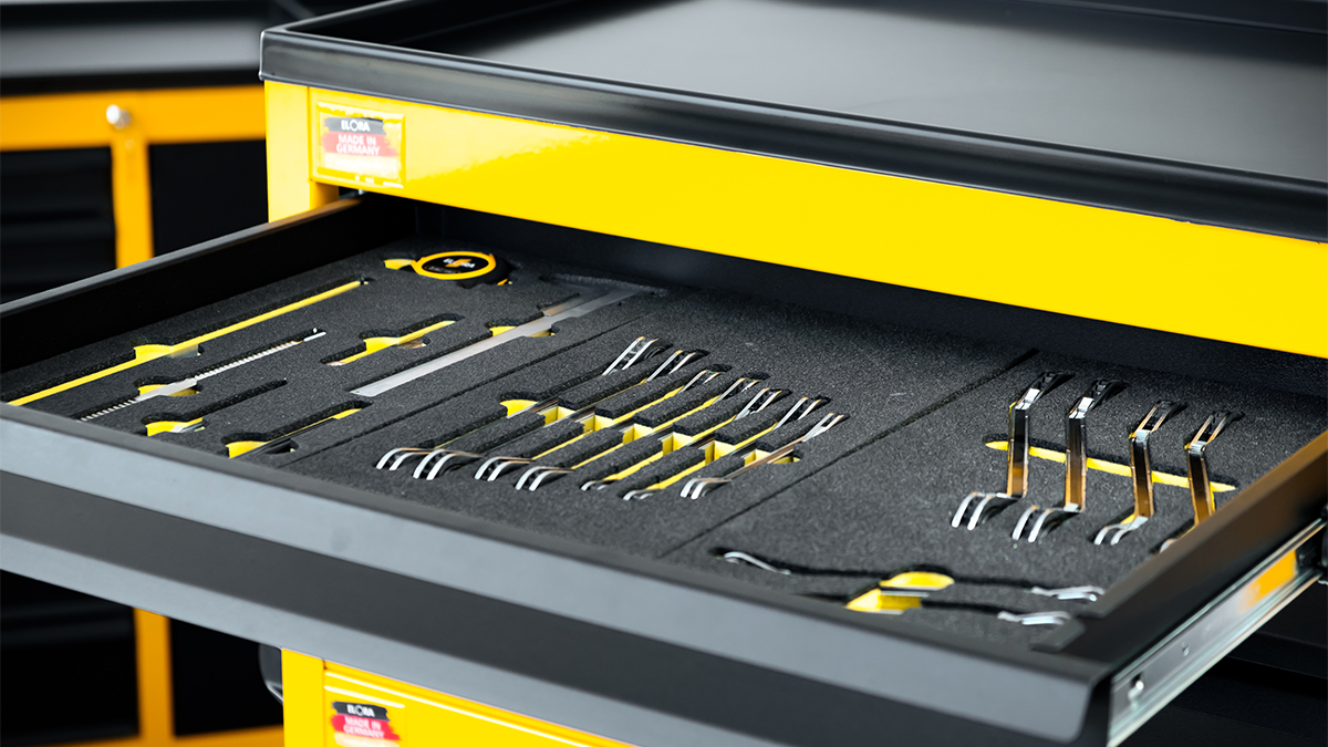 Ngăn kéo có chiều sâu lọt lòng 410 mm và ngang lọt lòng 573 mm. Tương thích hoàn toàn với các mô-đun dụng cụ ELORA OMS. Người dùng có thể tổ chức không gian ngăn kéo theo từng chủng loại công việc cụ thể. Từ cơ khí, điện – điện tử đến bảo trì ô tô.