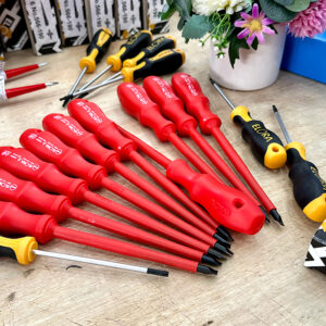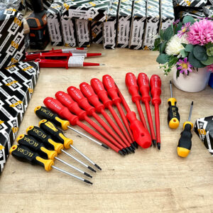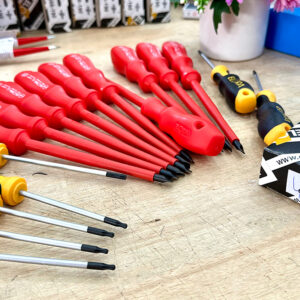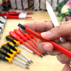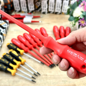 Tua vít dẹt cách điện 1000V series 900IS. Chuyên dùng cho ngành điện lực, thợ điện hay kỹ thuật điện nói chung. Tuốc nơ vít được bao bọc một lớp nhựa cách điện màu đỏ. Lưỡi làm bằng hợp kim chất lượng cao, thép cứng đặc biệt, phủ phosphated với màu đen đặc trưng.