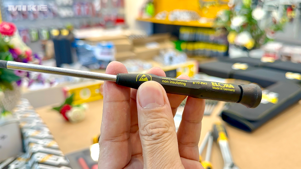 Tua vít 4 cạnh ELORA 610-PH ESD dùng cho linh kiện điện tử có nguy cơ bị hư hại bởi tĩnh điện. Sản xuất tại Đức. Cán có phân đoạn thiết diện lục lăng, dễ dàng lăn vặn bằng 2 ngón tay. Chuôi có núm xoay tì đè linh hoạt. Tay cầm bọc nhựa có điện trở siêu cao 06 đến 109 Ω.