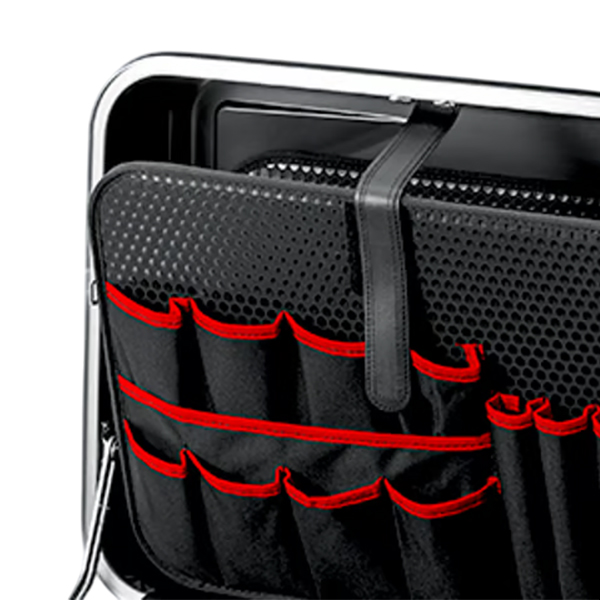Knipex BIG Twin Move có khả năng mở nắp từ một bên hoặc cả hai bên độc lập theo dạng chữ V. Cơ cấu bản lề giữ nắp chắc chắn ở mọi góc mở. Cho phép nắp đứng tự do trong mọi tư thế. Hỗ trợ thao tác lấy dụng cụ dễ dàng ngay cả khi vali đã được đặt cố định. Tấm trung tâm bên trong vali gắn chắc vào khung nhôm. Tạo nhiều vị trí lắp dụng cụ thông qua hệ thống vòng đàn hồi và 12 ngăn nhỏ.